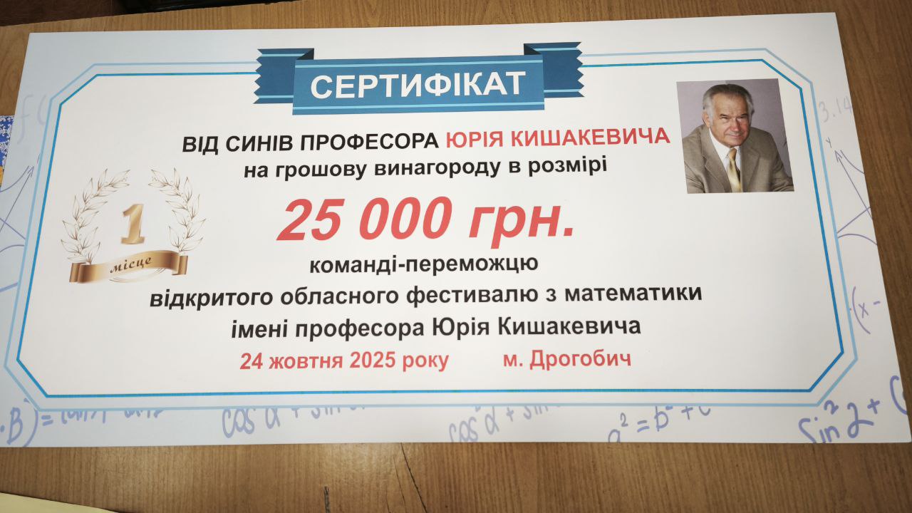 Особливою частиною фестивалю, що гідно продовжує справу видатного науковця, є призовий фонд . Сини Юрія Кишакевича – Лев та Богдан – заснували грошову нагороду для команди-переможця – 25 тисяч гривень! Це не лише матеріальне заохочення, а й потужний стимул для розвитку обдарованої математичної молоді Львівщини .